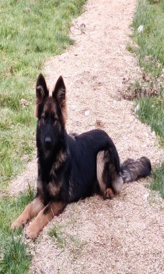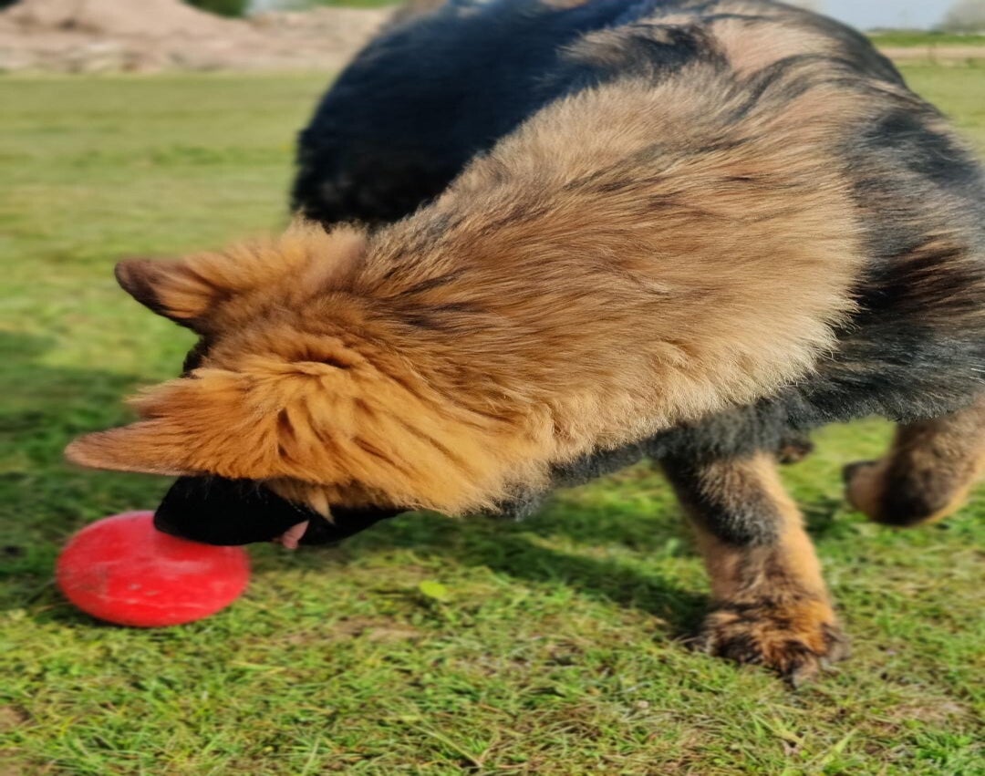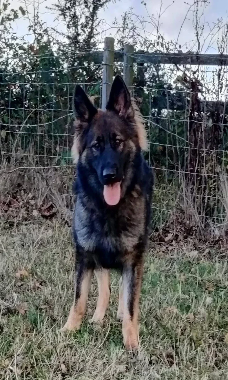 The other dogs - 2 male GSDs and my border collie girl absolutely adore her. Pixie is a very sociable, happy and well-balanced youngster with an inquisitive nature and a desire to please. Already very obedient, she is quick to learn and is enjoying all her new experiences. Pixie is beautiful, both in looks and nature and I'm very proud of her.