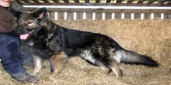 Who would have thought that Stone, a 100% working line dark sable, short coated GSD could be their grandad?